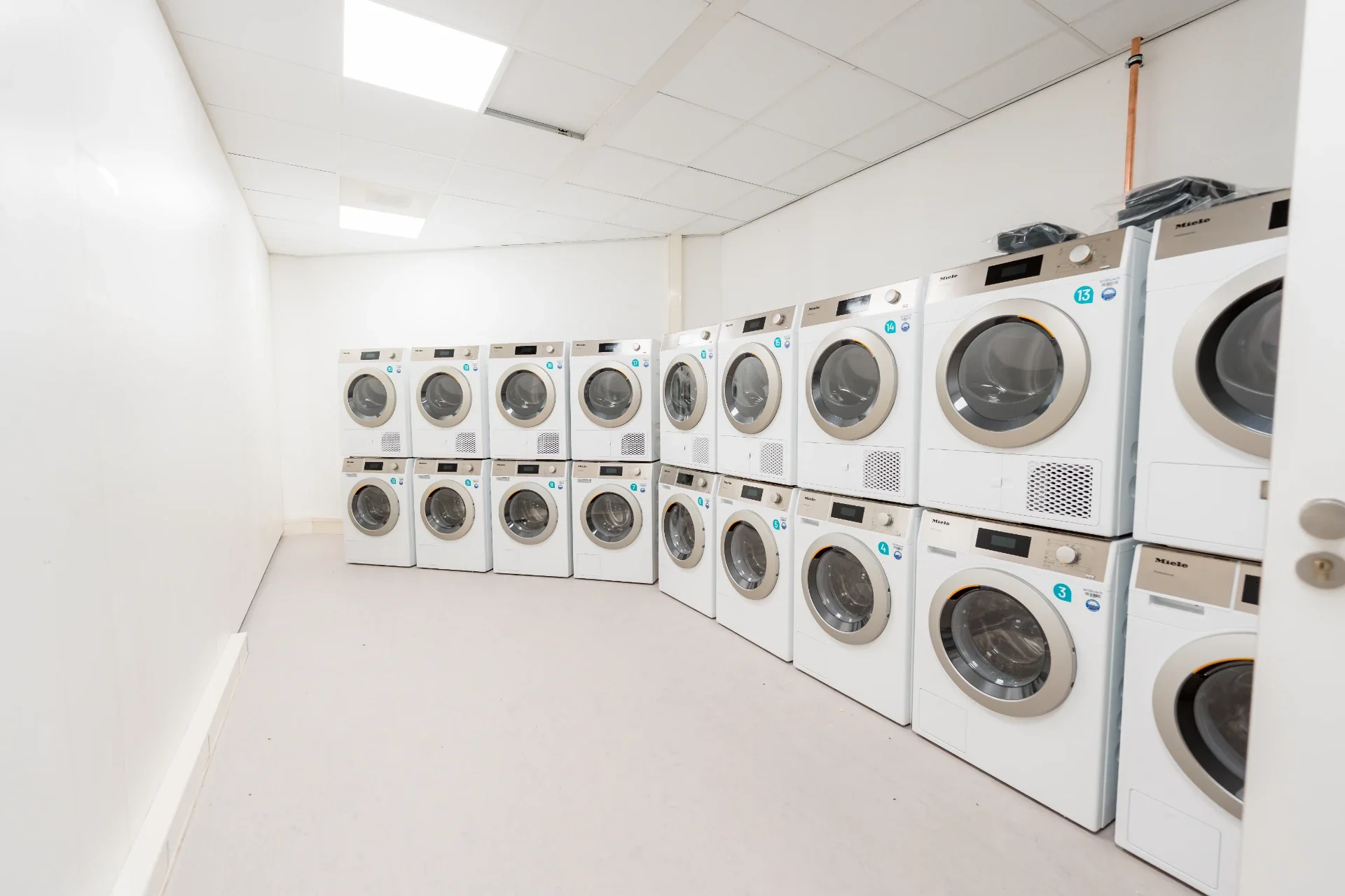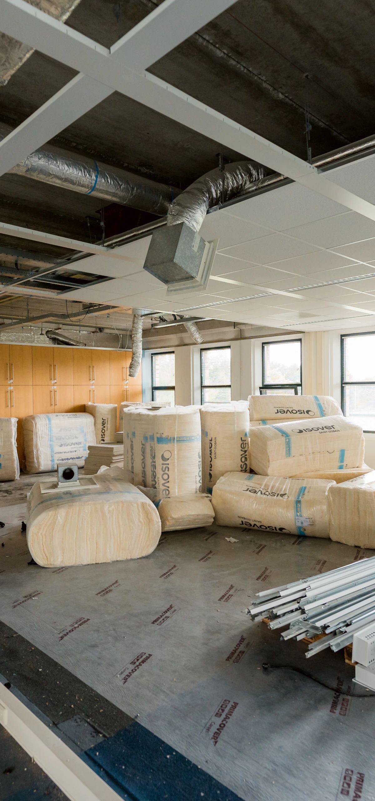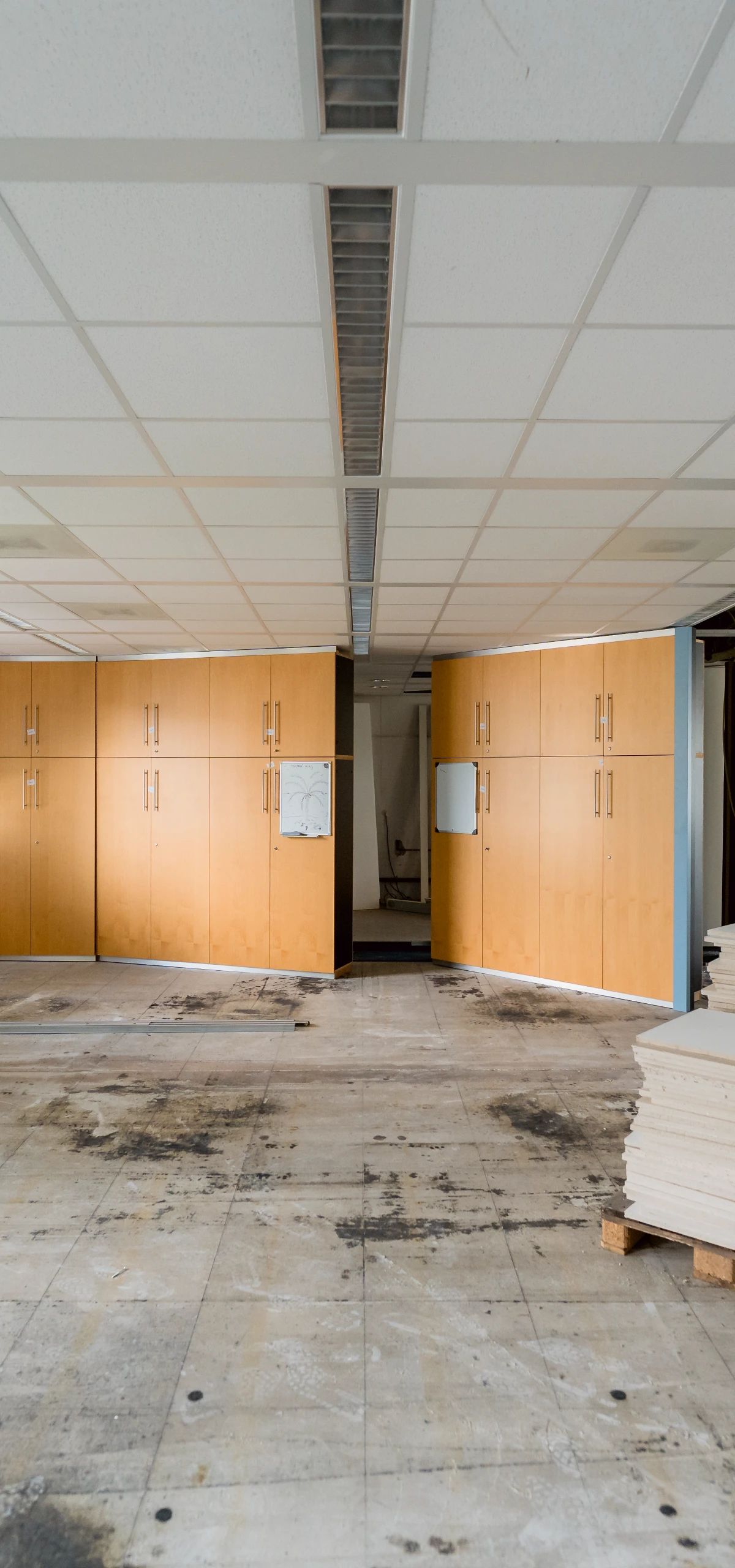 Sloopwerk vormt de start. Vloeren, vaste kasten, pantry's en productiekeukens worden verwijderd. Er is aandacht voor betonboringen en deuropeningen. Vervolgens worden nieuwe metal stud-wanden en gipsplaten opgebouwd in verschillende diktes en uitvoeringen, inclusief akoestische isolatie waar nodig. Plafondvlakken worden hersteld en deels vervangen door systeemplafonds; in natte ruimtes worden andere modules toegepast. Traphuizen blijven bestaan, trappen en leuningen krijgen kindveiligheid en afwerking. Kort: de ruggengraat van het gebouw wordt aangepast om woonunits met goede compartimentering mogelijk te maken.