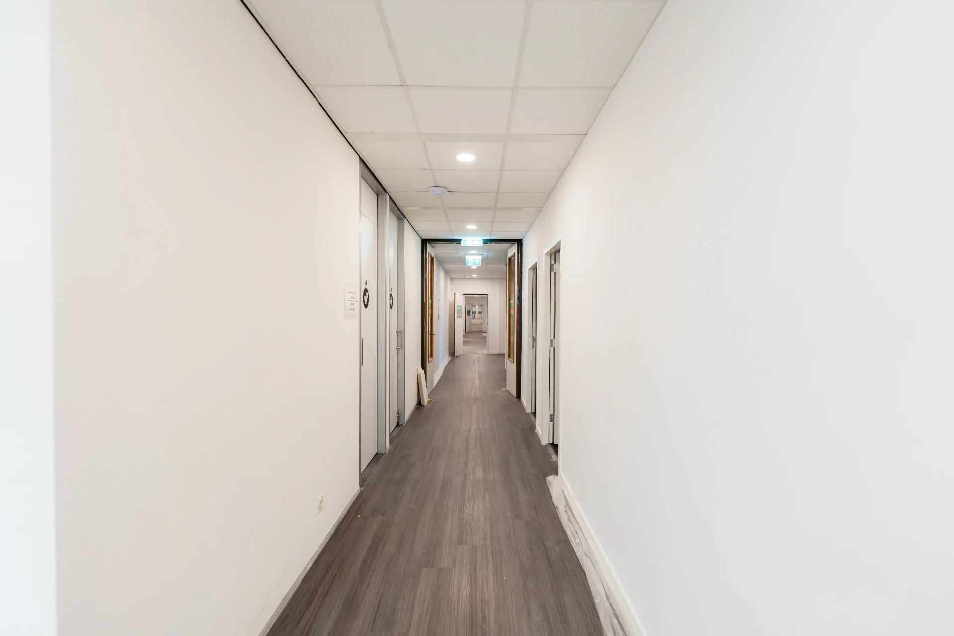 Brandveiligheid is kern in dit project. De transformatie naar woonfunctie vereist nieuwe brandmeld- en ontruimingssystemen met bewaking en meerdere lussen. De opdracht omvat levering en installatie van een complete brandmeld- en ontruimingsinstallatie, inclusief alarming, lusbekabeling en bediening. Bouwkundig worden nieuwe brandcompartimenten aangebracht en bestaande doorvoeringen brandwerend gemaakt. Er is aandacht voor vluchtwegmarkering, instructies per kamer en periodieke inspecties. De omschrijving benoemt ook organisatorische maatregelen: instructie, rapportage en beheerprotocollen. Dit is geen bijzaak; het bepaalt het ontwerp van wanden, deuren en de routing van installaties.